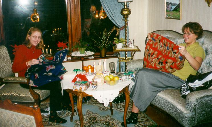 | Pernilla och Ann-Sofie öppnar julklappar | ||||
