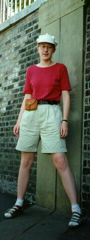 | Jag står med ett ben i öst och ett i väst. Greenwich 1996. |